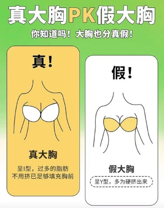 没经验的可通过下面两种图来学习下如何辨别真假大胸